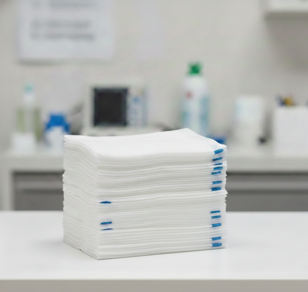 Disposable medical gauze spongeUsed to absorb blood and other fluidsUsed to clean woundsMade from cotton or non-woven materialsAvailable in sterile and non-sterile formsOpen weave helps remove dead tissueHelps wick fluid away from wound