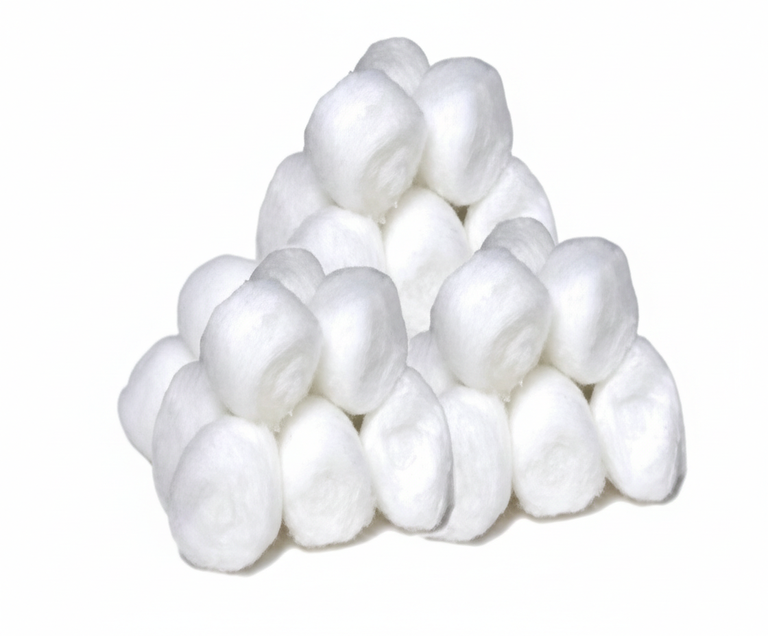 Soft fibre balls made from cottonUsed for cleaning woundsUsed to apply antiseptics or topical ointmentsHelps stop bleeding after injectionsUsed during surgical procedures to absorb bloodUsed for padding wounds before bandaging
