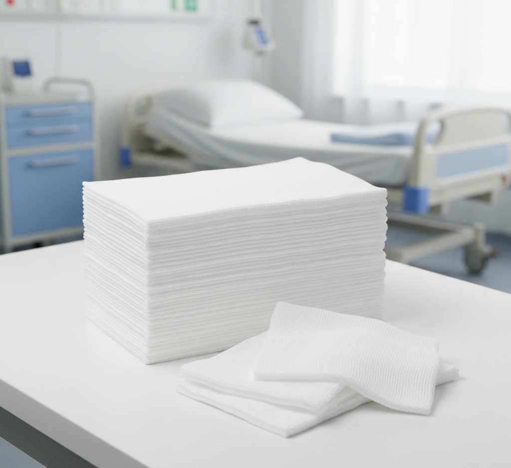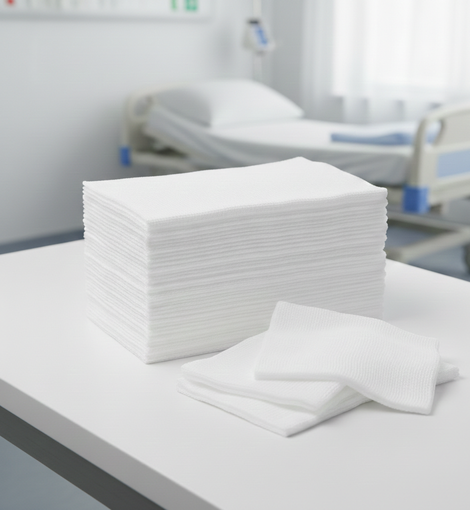 Common wound dressing materialMade from woven cotton or synthetic fabricAbsorbs fluids and protects woundsActs as barrier to reduce infection riskMinimizes sticking to woundsUsed to hold dressings in place